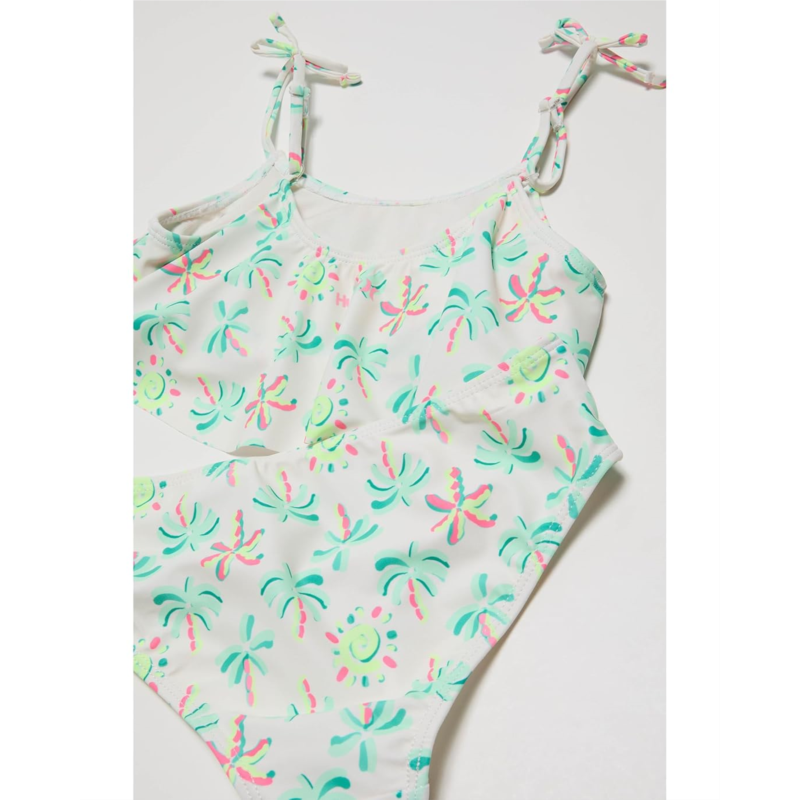 Get ready for a fabulous beach day in this Hurley Kids Flounce Bikini, featuring an eye-catching flowy top and vibrant prints. Don''t forget the sunscreen - the beach is calling! This is a two-piece suit and consists of a flounced top and regular-cut bottoms. The top has a scoop neckline, self-tie shoulder straps with adjustable sliders, and a cropped straight hem. The bottoms feature an elasticized waistband and moderate coverage.