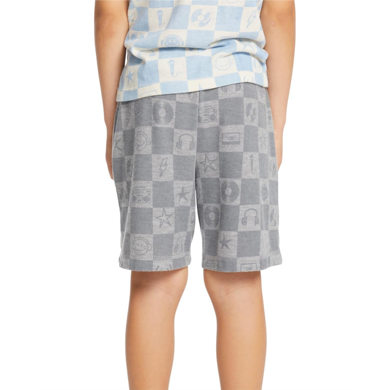 Play joyfully experiencing enhanced freedom of movement and a relaxed vibe wearing Chaser Kids Music Icons Shorts. The regular-fitted shorts feature a mid-rise elasticated waistband, two side pockets for functionality, a pretty checkered pattern with graphics, and a short-length silhouette.