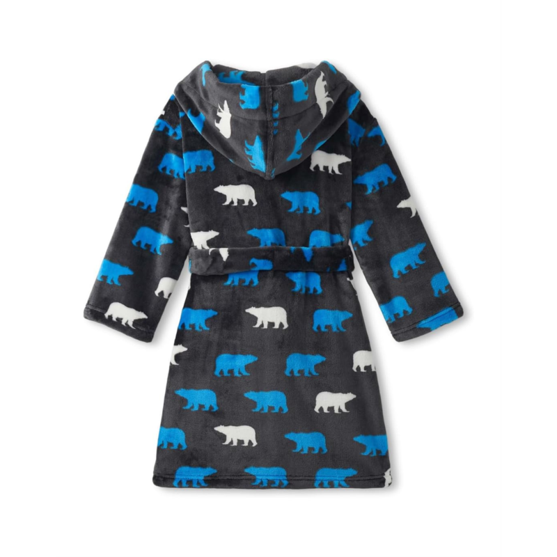 Snuggle up in style wearing the Hatley Kids Fuzzy Fleece Robe. Perfect for chilly nights and cozy mornings, this ultra-soft robe wraps your little one in all-day warmth while adding a touch of fun with its adorable polar bear silhouette design. Featuring a roomy hood and long sleeves for complete coverage, it''s crafted to keep the cold away while feeling unbelievably gentle against the skin. Front patch pockets are perfect for keeping little treasures or warming hands, while belt loops at the waist ensure a secure fit that stays put during lounging or bedtime routines. Designed with a wrapkorea silhouette, this robe is as functional as it is charming, making it a must-have for young adventurers who love animal-inspired details.