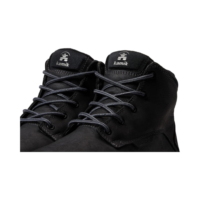 The Kamik Spencer Mid is made with waterproof DriDefense membrane leather upper. These lace-up boots also offer a moisture-wicking fleece lining, Ortholite Hybrid insole that reduces impact on your foot, padded collar, round toe silhouette, and pull tab in back for easy entry.