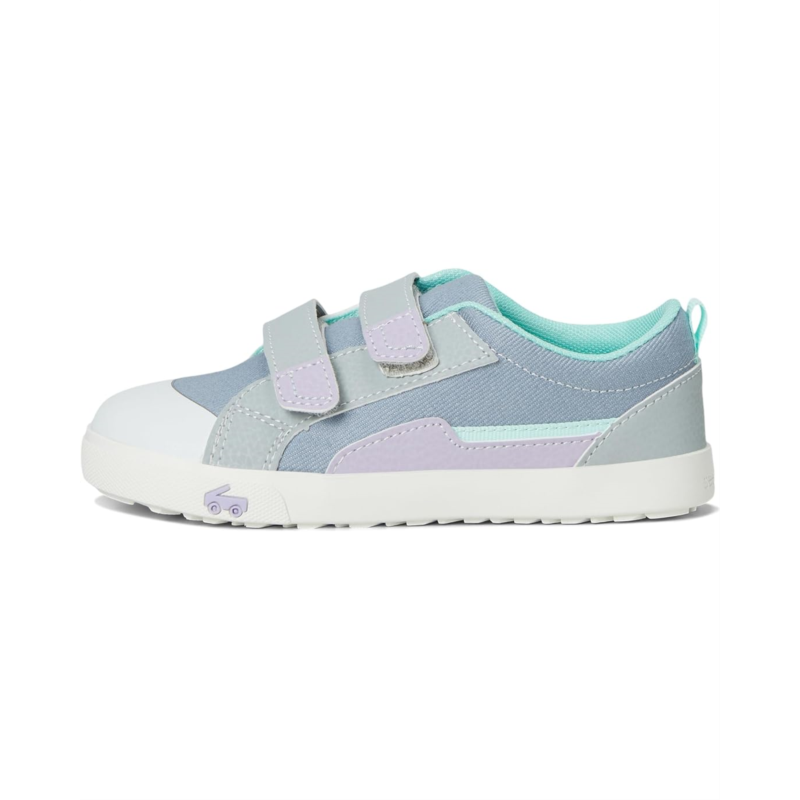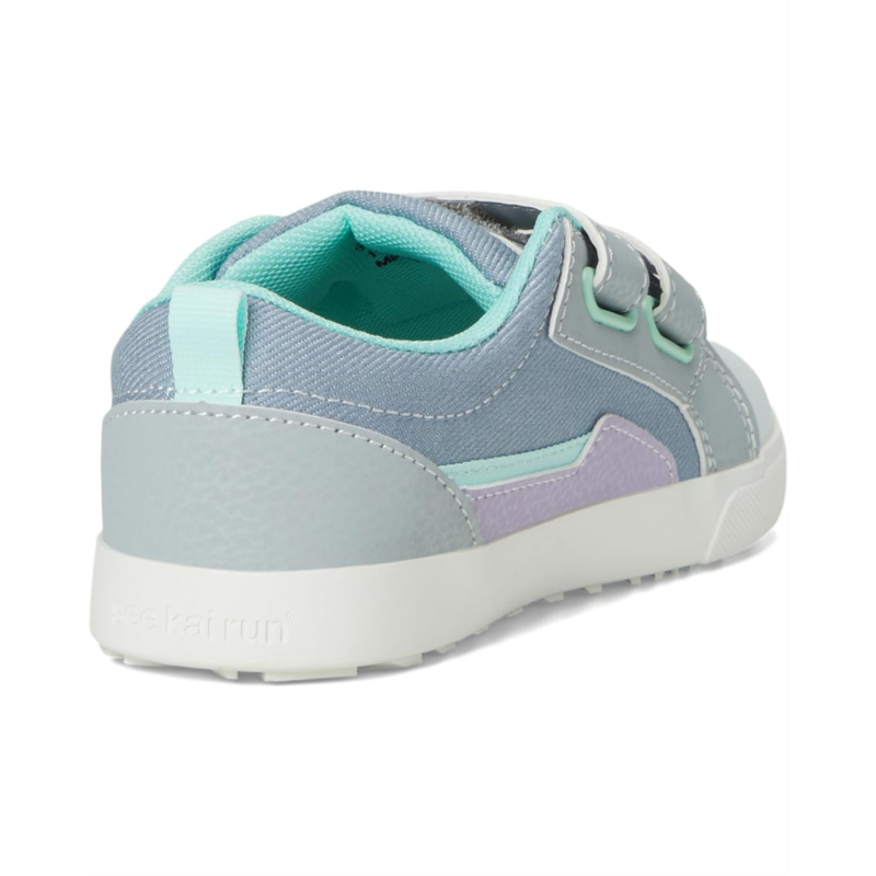 Hit the playground in style wearing the must-have See Kai Run Riley sneaker. A fun mix of fabrics and colors on the outside team with recycled, breathable mesh lining on the inside to create a pair that''s comfortable, classic, and downright cool. The shoes feature a natural rubber outsole with a herringbone lug pattern that provides great traction for play while a generous toe box provides room for healthy foot development and double reverse hook-and-loop strap closure with faux elasticized laces allow for secure fit and custom. adjustability.