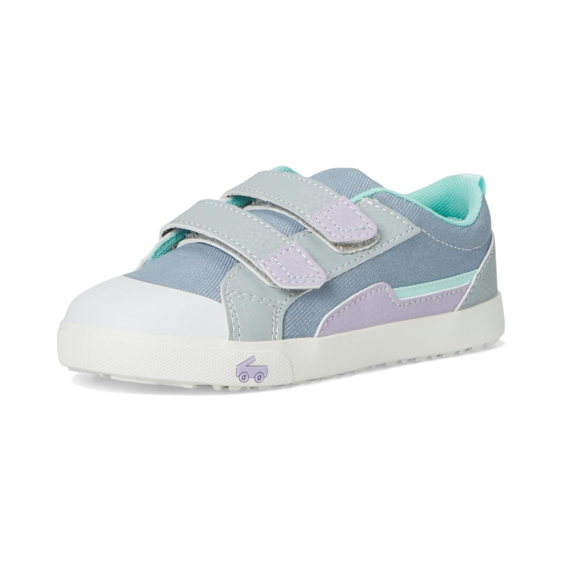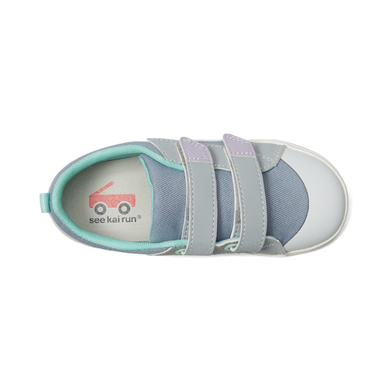 Hit the playground in style wearing the must-have See Kai Run Riley sneaker. A fun mix of fabrics and colors on the outside team with recycled, breathable mesh lining on the inside to create a pair that''s comfortable, classic, and downright cool. The shoes feature a natural rubber outsole with a herringbone lug pattern that provides great traction for play while a generous toe box provides room for healthy foot development and double reverse hook-and-loop strap closure with faux elasticized laces allow for secure fit and custom. adjustability.