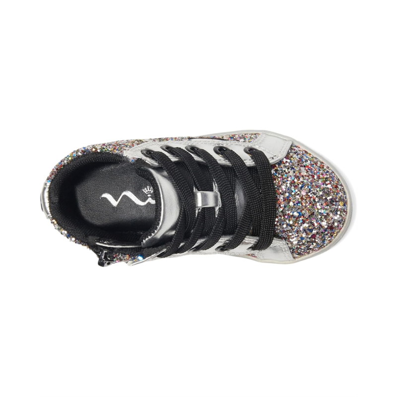 The Nina Kids Cass high-top sneaker blends shimmering flair with everyday comfort for fashion-forward little ones. Designed with leather and synthetic upper, it features a dual closure system?lace-up front plus a side zipper?for wearable ease. The round toe and cushioned textile insole ensure flexibility and support, while the synthetic outsole keeps steps steady from school days to weekend adventures.