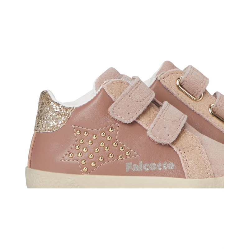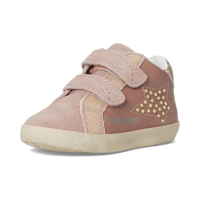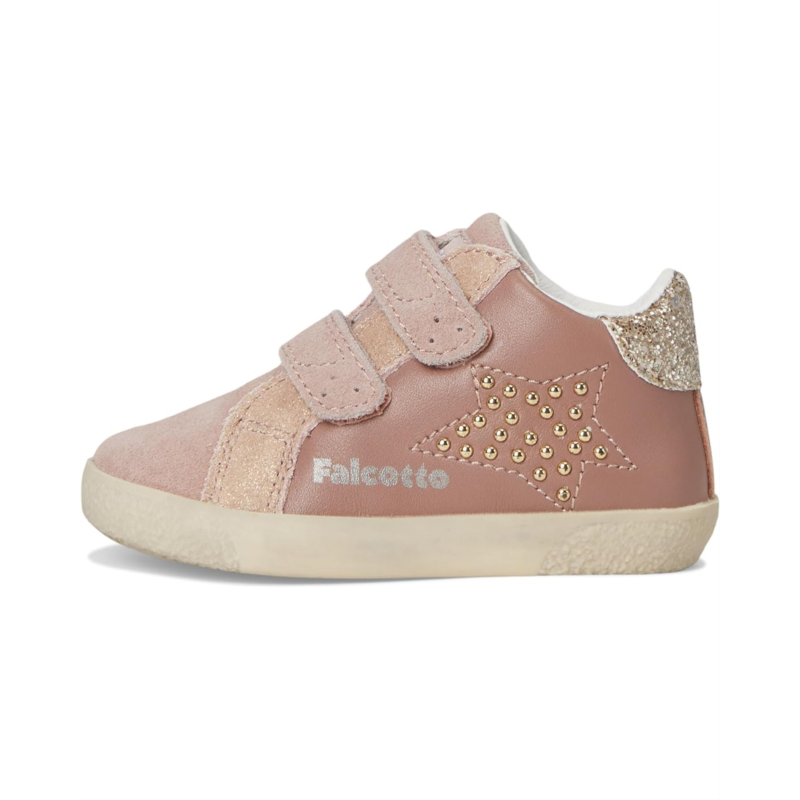 The Naturino Falcotto Mauvis VL. Shoes combines casual comfort with a bit of style. The low-top shoes come with a suede upper with glitter detail & studded star detail, leather lining, and a leather insole. The double hook-and-loop closure ensures a secure fit.