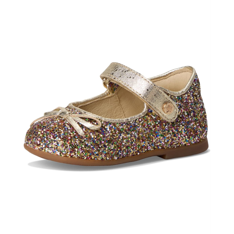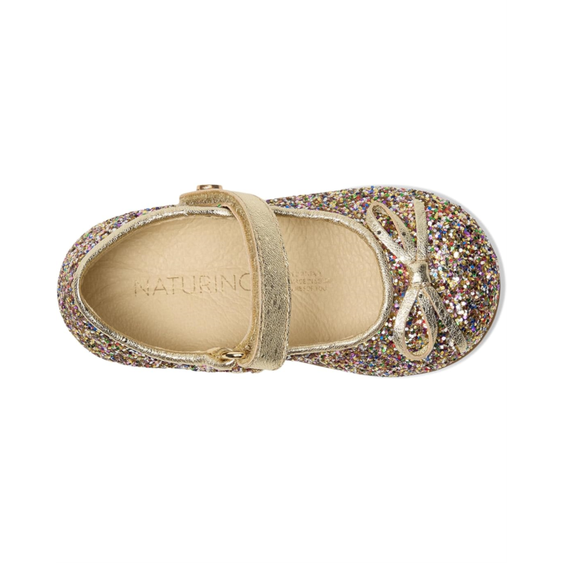 Donne a cute look by complementing your little one''s outfits with the pretty Naturino Naturino Ballet Flats. The round-to flats feature a faux leather upper beautifully detailed with allover glitter or metallic details and a bow motif. The Mary Jane silhouette with a hook-and-loop strap allows easy on/off.