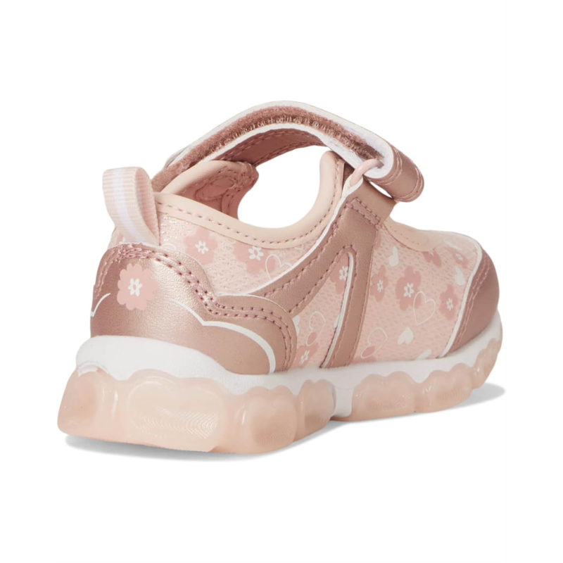 Sparkle up your little ones'' look by complementing her outfits with the Josmo Disney Princess Lighted Maryjane Shoes. The round-toe, lightweight shoes are crafted with a water-resistant faux leather upper with a hook-and-loop strap, a nylon lining, and a faux leather insole. The ankle pull tab allows east donning & doffing and the synthetic rubber outsole comes with lighted details for added style.