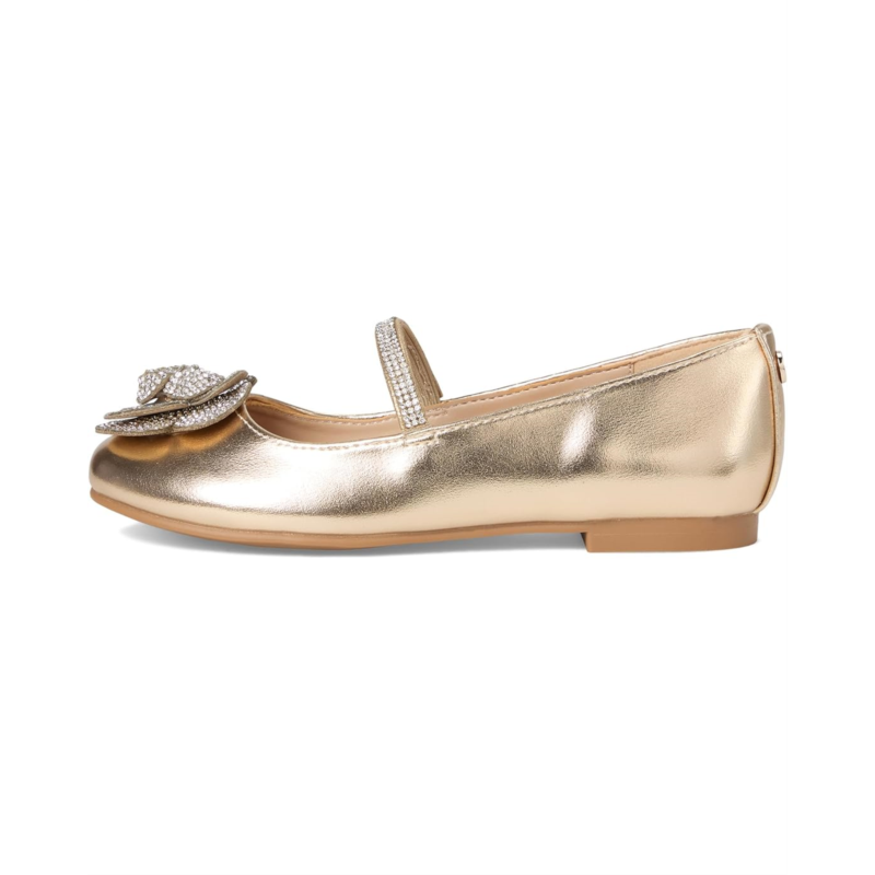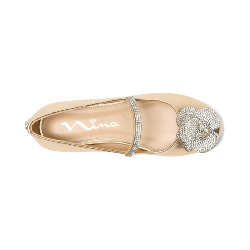 Delicate, dazzling, and effortlessly sweet - IZZY by Nina Kids is a dream-worthy ballet flat designed for magical moments. With sparkling crystal accents and a charming flower embellishment, this style brings a touch of fairy-tale beauty to every step. The elasticized strap ensures a snug, easy fit, while the round toe design, cushioned memory foam insole, and non-slip outsole offer comfort and confidence all day long. Whether she''s twirling at a party or dressing up for a special occasion, IZZY adds the perfect finishing touch.