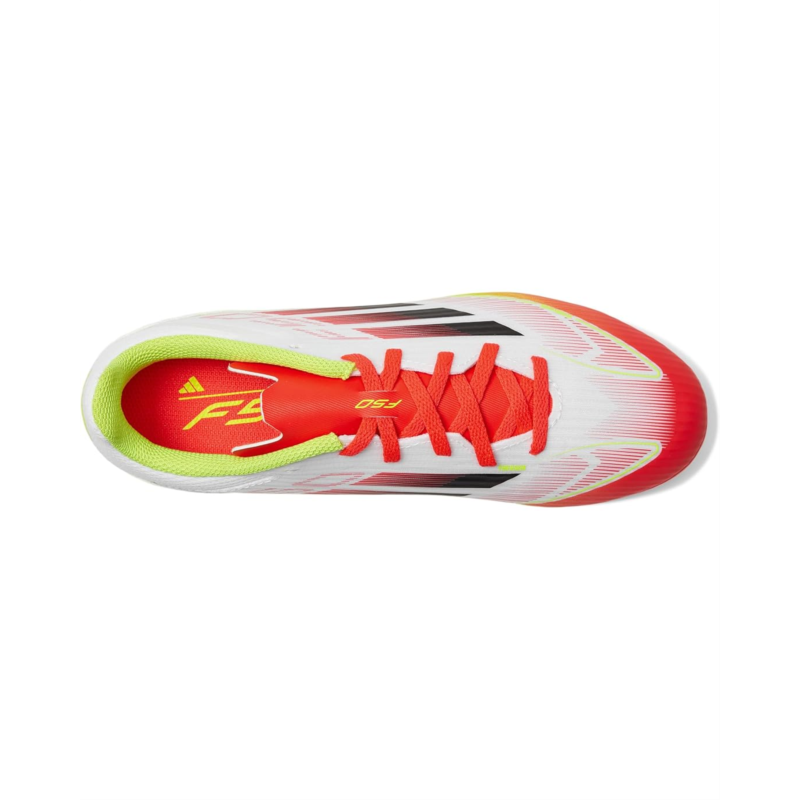 The adidas Kids F50 League Firm Ground/Multi Ground Soccer Cleats are built for young game-changers who demand explosive speed and unstoppable agility. The Sprintgrid print on the forefoot delivers a sleek, high-energy look, while the Sprintplate 360 outsole fuels dynamic propulsion across firm and multi-ground surfaces. A durable rubber upper and insole provide a snug yet breathable fit, while the synthetic rubber lining and outsole ensure stability with every pivot and strike. Finished with a secure lace-up closure for locked-in confidence, these cleats are designed to dominate.