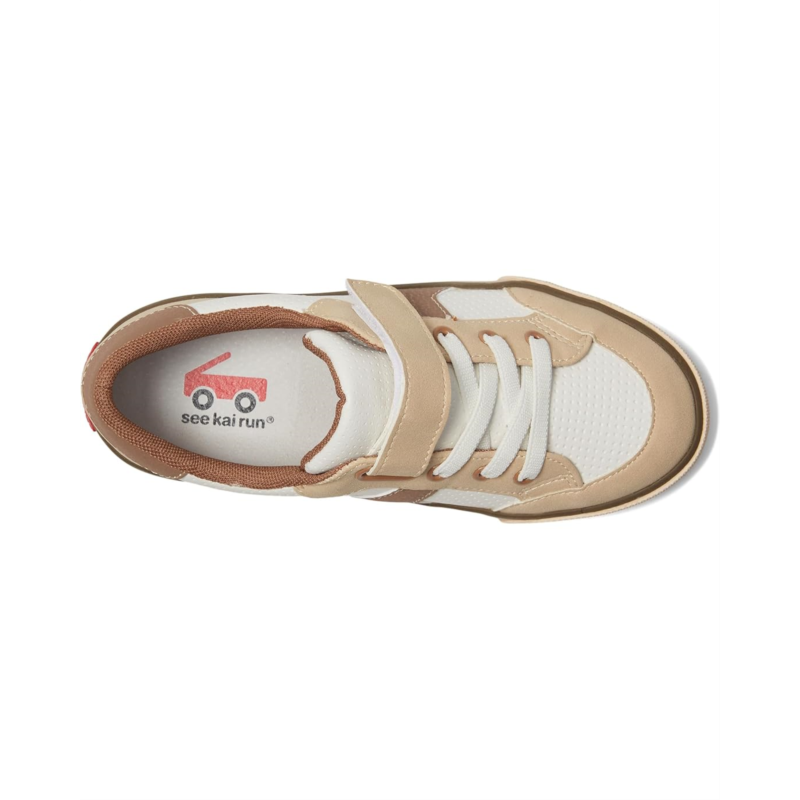 See Kai Run Kids Connor. The sneakers feature flexible recycled nylon upper with durable overlays for support, elasticized lace-up with hook-and-loop strap closure, and brand detailing on the footbed.