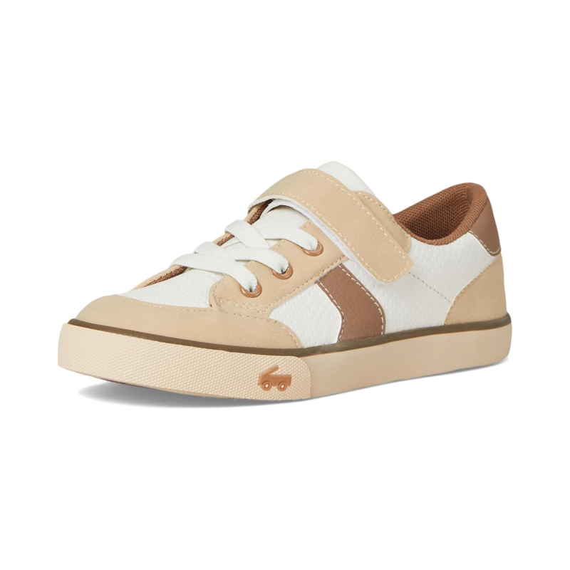 See Kai Run Kids Connor. The sneakers feature flexible recycled nylon upper with durable overlays for support, elasticized lace-up with hook-and-loop strap closure, and brand detailing on the footbed.