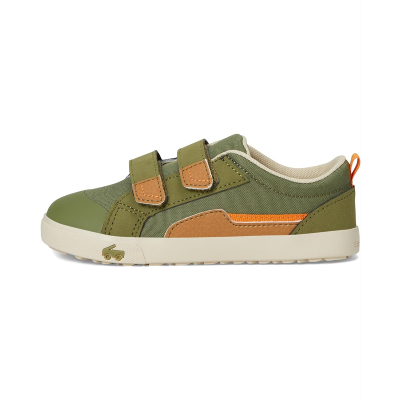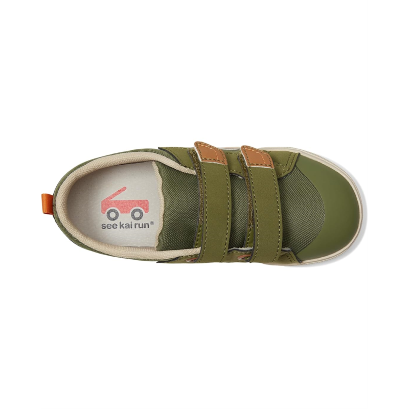 Hit the playground in style wearing the must-have See Kai Run Rile sneaker. A fun mix of fabrics and colors on the outside team with recycled, breathable mesh lining on the inside to create a pair that''s comfortable, classic, and downright cool. The low-top sneakers feature a natural rubber outsole with a herringbone lug pattern that provides great traction for play while the generous toe box provides room for healthy foot development.