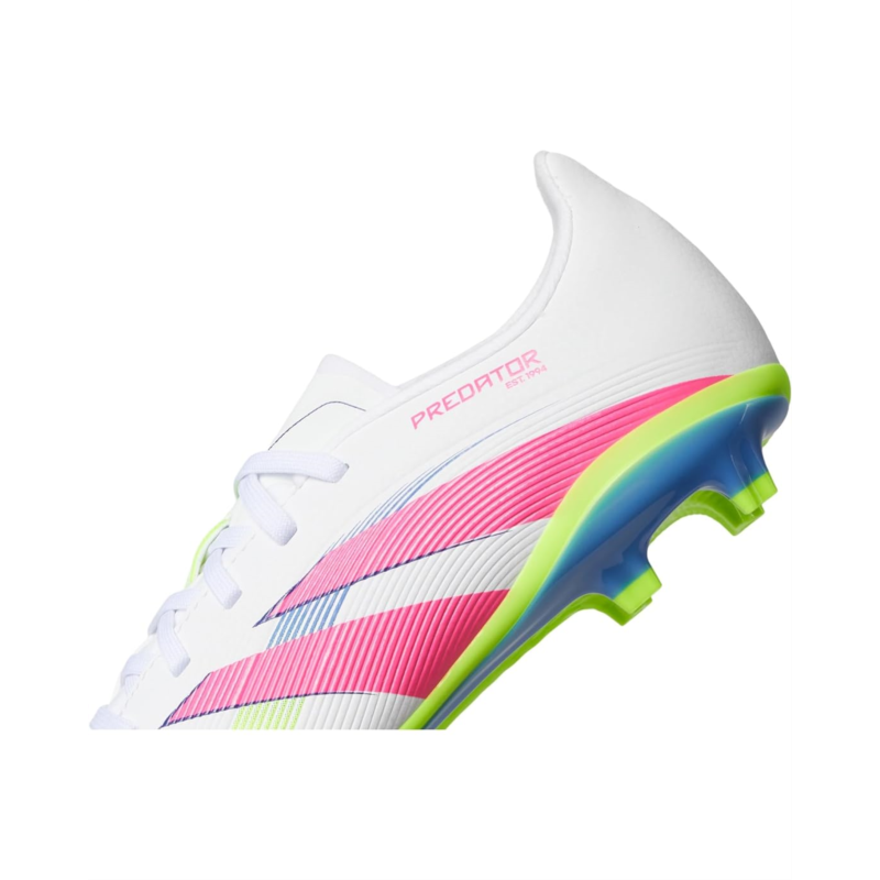 Designed for your little one to keep up with their endless energy, the adidas Kids League Predator Firm Ground/Multi Ground Soccer Cleats are crafted from rubber upper, synthetic rubber lining, and rubber insole. Featuring round toe, lace-up closure, low-top silhouette, and allover unique design.