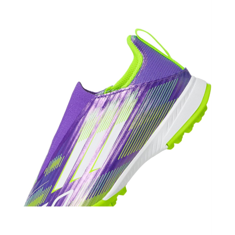 Find your fast to truly express yourself on the field. Feel the rush in adidas Kids F50 League Laceless Turf Cleats engineered for speed. Standing out with an eye-catching Sprintgrid print, the Fiberskin upper on these juniors'' League soccer cleats employs an adaptive laceless collar for solid lockdown and clean striking. A lug rubber outsole offers pace on artificial turf surfaces.