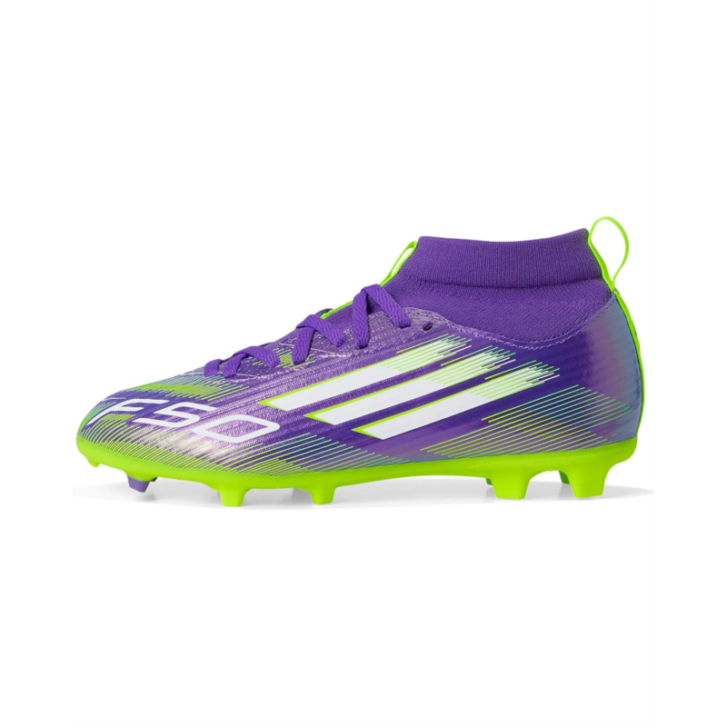 Find your fast to truly express yourself on the field. Feel the rush in adidas Kids F50 League Mid Top Firm Ground/Multi Ground Cleats engineered for speed. Standing out with an eye-catching Sprintgrid print, the Fiberskin upper on these juniors'' League soccer cleats employs a mid-cut collar for solid lockdown. A lightweight Sprintplate outsole delivers serious pace on multiple surfaces.