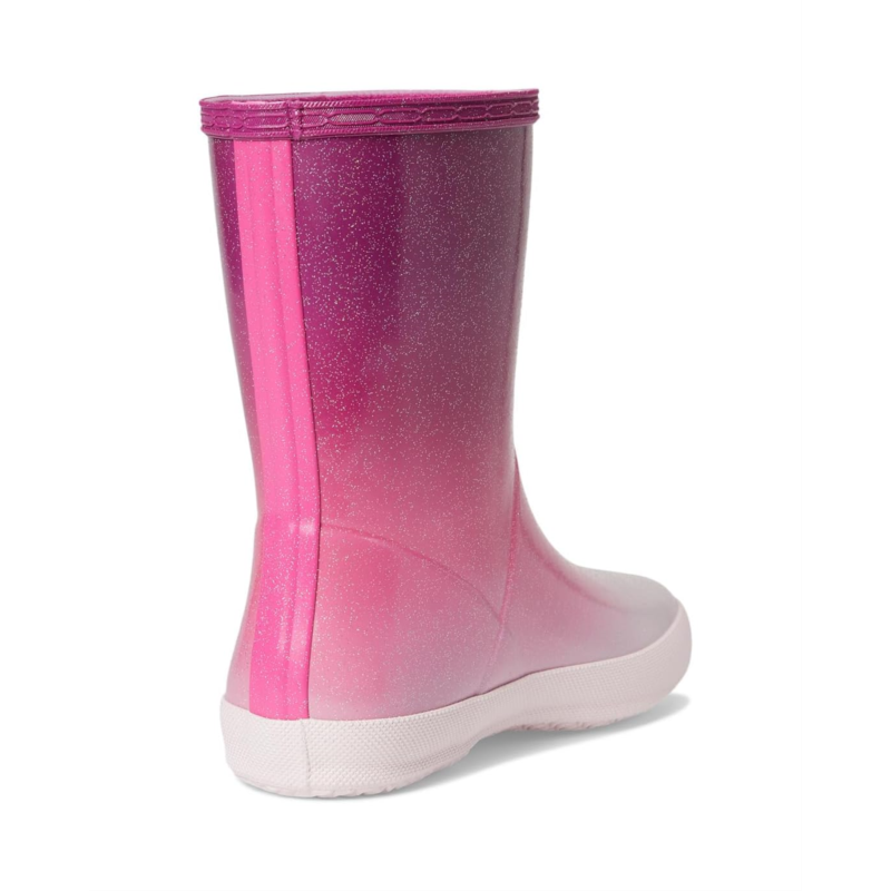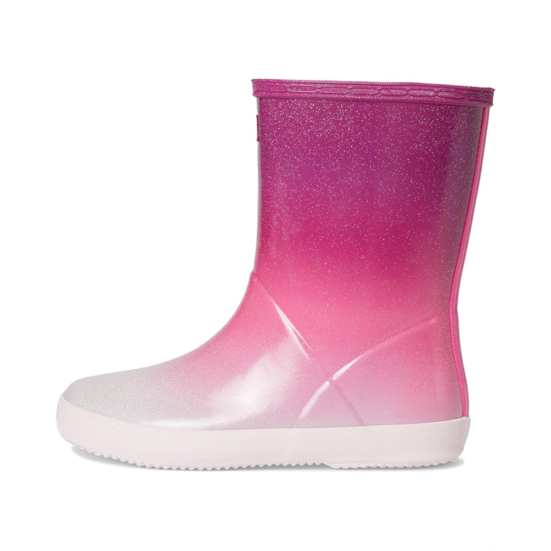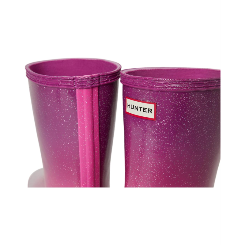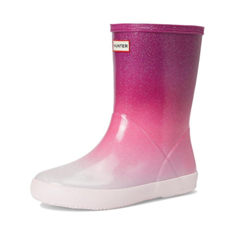 Finished with a shimmering glitter layer, the kids'' first Hunter Kids First Starcloud boot is perfect for puddle splashing. Handcrafted from natural rubber outsole, these fully waterproof boots have a flat outsole for stability, and a rounded toe gives the little toes room to move. Similar to the adults'' original boots, the specially developed tread on the calendared outsole provides grip across various terrains, and the soft recycled polyester lining ensures comfort. Little feet will be protected on any adventure: rain or shine.