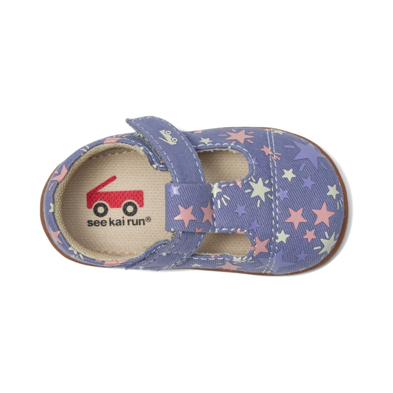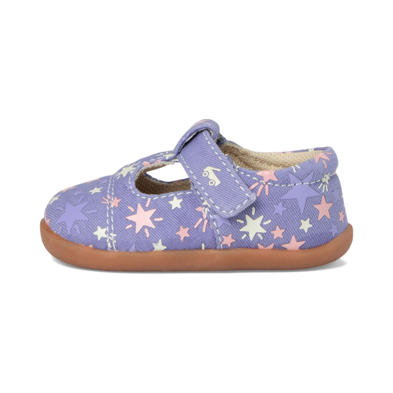 Adjustable hook-and-loop strap allows for a secure fit while generous toe box provides room for healthy foot development.