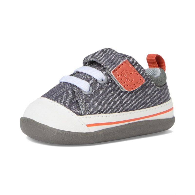 Watch his world expand step by step in the Stevie First Walker. Classic gray denim, recycled materials and a flexible rubber outsole combine to create a lightweight, comfy pair perfect for his budding adventures.