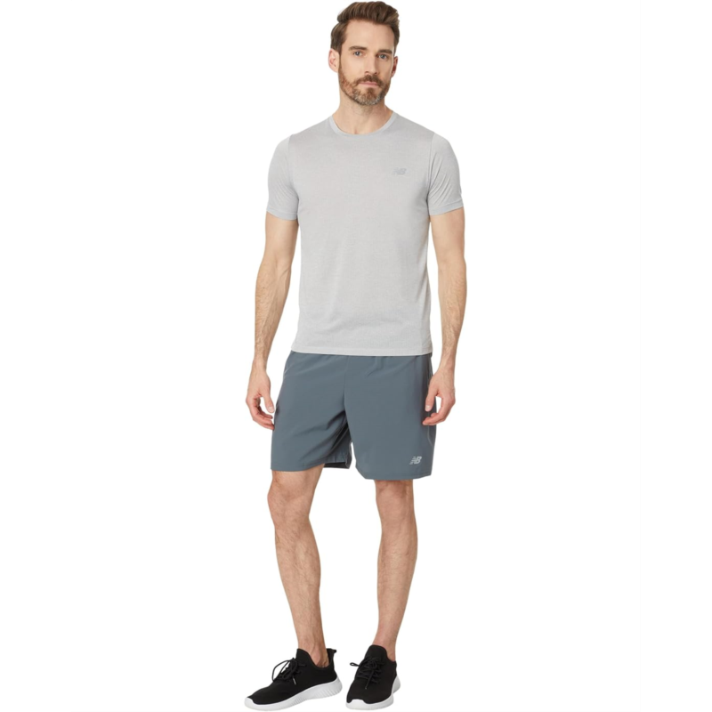 Help your skin breathe when your workout session heats up New Balance Men''s Sport Essentials Short 7''. The NB DRY technology has a moisture-wicking facility to keep you comfortable in all weather conditions. This exclusive sportswear flaunts a regular fit with drop-in pockets for easy access to nutrition and other valuables. It also has a storage tunnel where you can thread extra layers.
