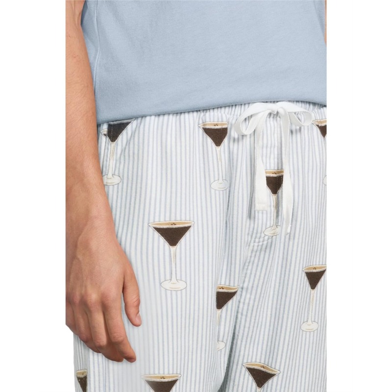 Experience the luxury of rest wearing the P.J. Salvage His & Hers Happy New Year PJ Set. This nightwear features tee with crew neckline, short sleeves, brand logo on the left chest, and straight hem. It comes with tie waist pants with espresso martini pattern, fly detailing classic fit, and straight leg.
