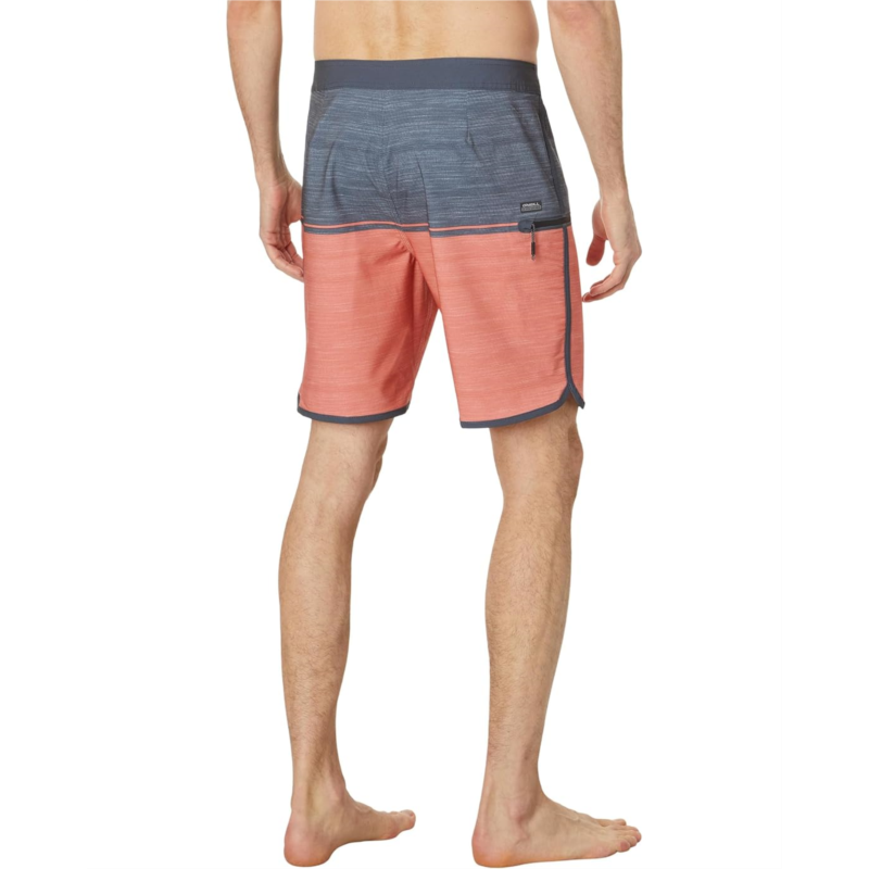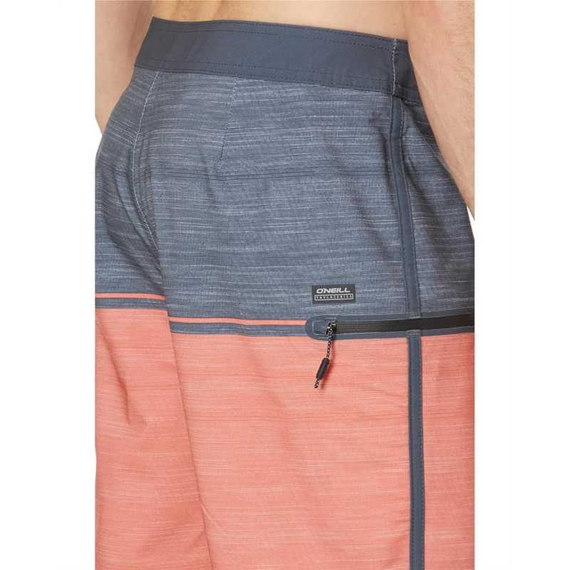 Chill by the sea wearing the O''Neill Hyperfreak Tech Trvlr Nomad Scallop 19'' Boardshorts. Crafted from germ destroying treated and Hyperfreak pro stretch fabric that allows an easy, wide range of movement. It features Flex-Tie drawcord closure, welded zippered side hand pocket, scallop hem and above-the-knee length silhouette.