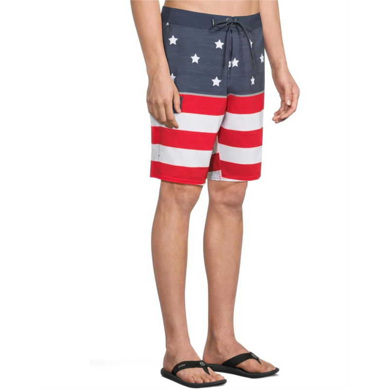 The O''Neill Lennox USA 20'' boardshorts are built for the modern adventurer who craves comfort, performance, and standout style. Featuring bold printed designs and a secure drawstring closure, these trunks are all about making moves with confidence. Crafted from O''Neill Blue four-way stretch fabric infused with recycled fibers, they offer eco-conscious flexibility that moves with you. Stay light and dry thanks to O''Neill Hyperdry DWR technology, designed for ultra-fast water resistance. The side pocket adds convenience, while rash-free Hyperthread ensures smooth, chafe-free wear from sunrise surf to sunset chill.