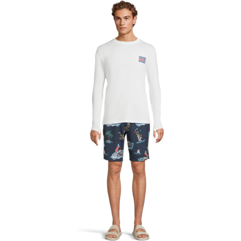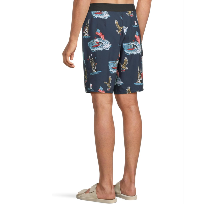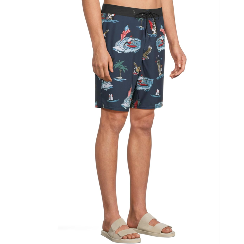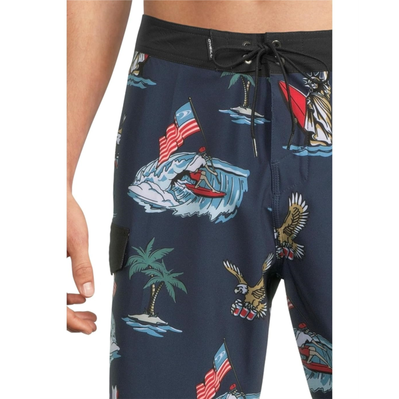 The O''Neill Lennox USA 20'' boardshorts are built for the modern adventurer who craves comfort, performance, and standout style. Featuring bold printed designs and a secure drawstring closure, these trunks are all about making moves with confidence. Crafted from O''Neill Blue four-way stretch fabric infused with recycled fibers, they offer eco-conscious flexibility that moves with you. Stay light and dry thanks to O''Neill Hyperdry DWR technology, designed for ultra-fast water resistance. The side pocket adds convenience, while rash-free Hyperthread ensures smooth, chafe-free wear from sunrise surf to sunset chill.