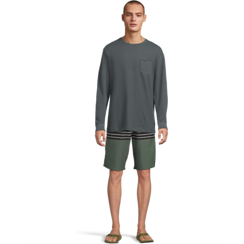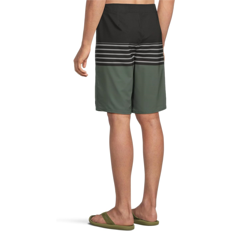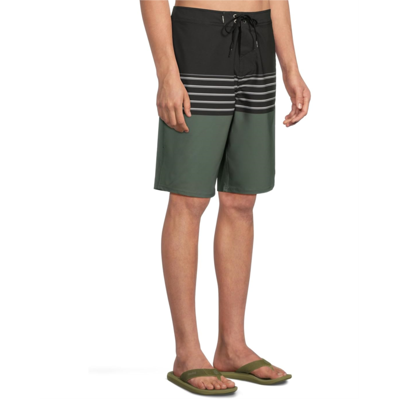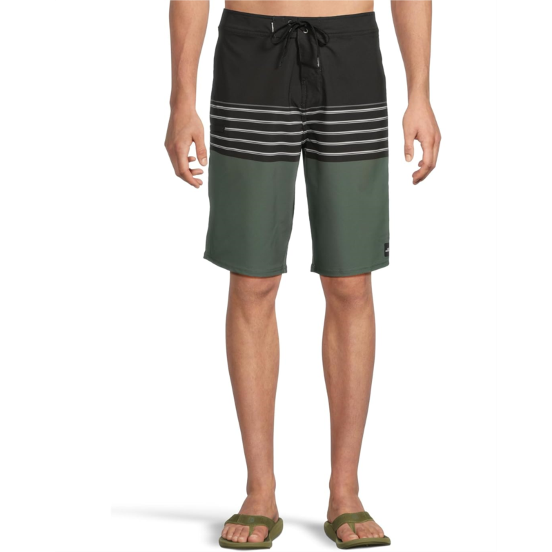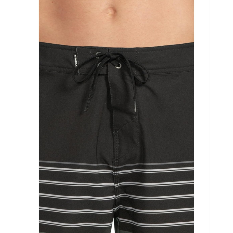 Take on style and functionality as you step on the beach wearing O''Neill Hyperfreak Heat Stripe 21 Boardshorts. The pull-on style shorts are crafted with O''Neill Blue Hyperfreak Stretch With Repreve, O''Neill Hyperdry DWR Technology, and an anti-rash hyperthread. It features a flex tie drawcord, side zip pocket, striped print, and an above-the-knee silhouette.