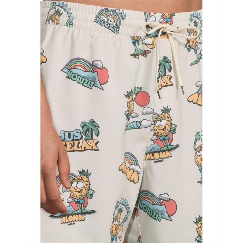 The Hurley Cannonball Volley 17 shorts are crafted from four-way stretch fabric with DWR coating, offering all-day comfort and a full range of movement. Styled with an allover print, these printed shorts are designed in a straight-leg silhouette with an elasticized drawcord waistband. Whether you''re lounging at home or packing for the beach, these pull-on shorts are a great choice.