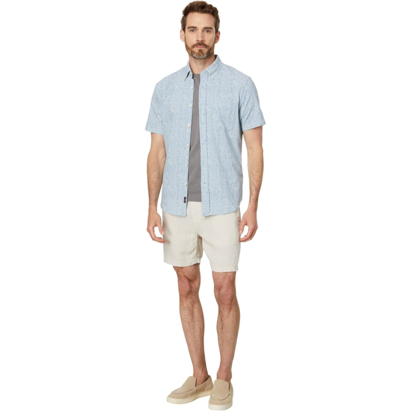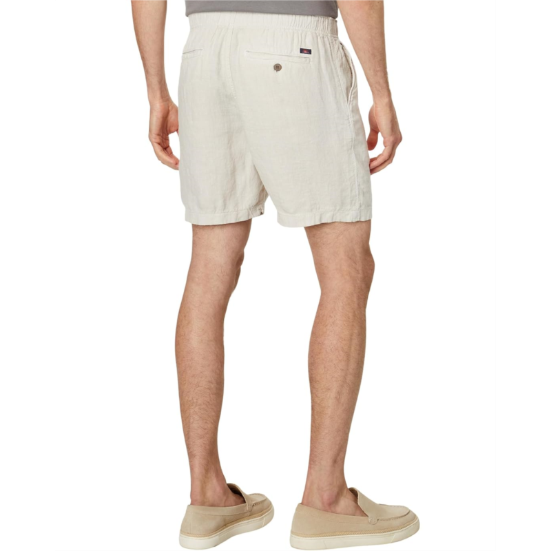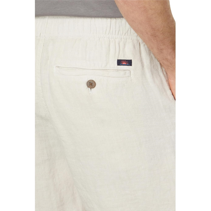 The Faherty Essential Linen Short is made for chilling out and kicking back, but can still look as dressy as you need it to. The fabric is a cotton linen blend - super soft, perfect stretch, and a little extra breathability and comfort for warm, sunny days. Think of this as your all-purpose short: part tailored, part lounge, and totally essential. The pull-on style shorts feature a classic-fit silhouette, a mid-rise elasticated waistaband with drawstring closure, a flat front design with two slash pockets, two welt pockets on the back, and a short length silhouette. It sits below the natural waist.