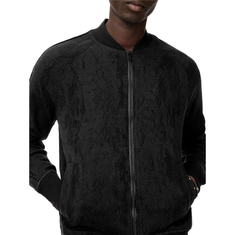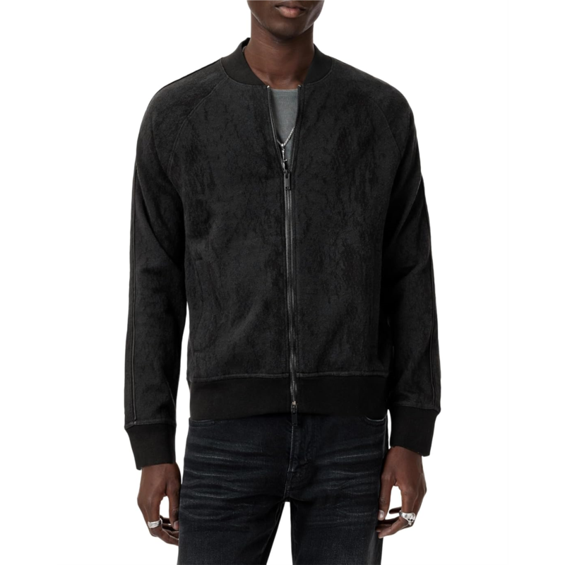 Perfect for styling and layering, the John Varvatos Riggins K6783S25 jacket makes a great addition to your wardrobe. The zippered front closure locks out the elements while the cotton blend fabric adds to its comfort. This zip-up jacket is designed with long sleeves, a crew neckline, and a straight hem. The ribbed cuffs, hem, and neck ensure a snug fit.