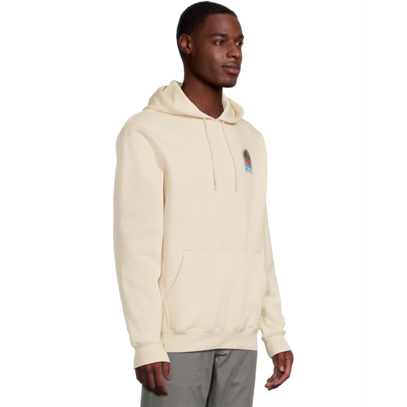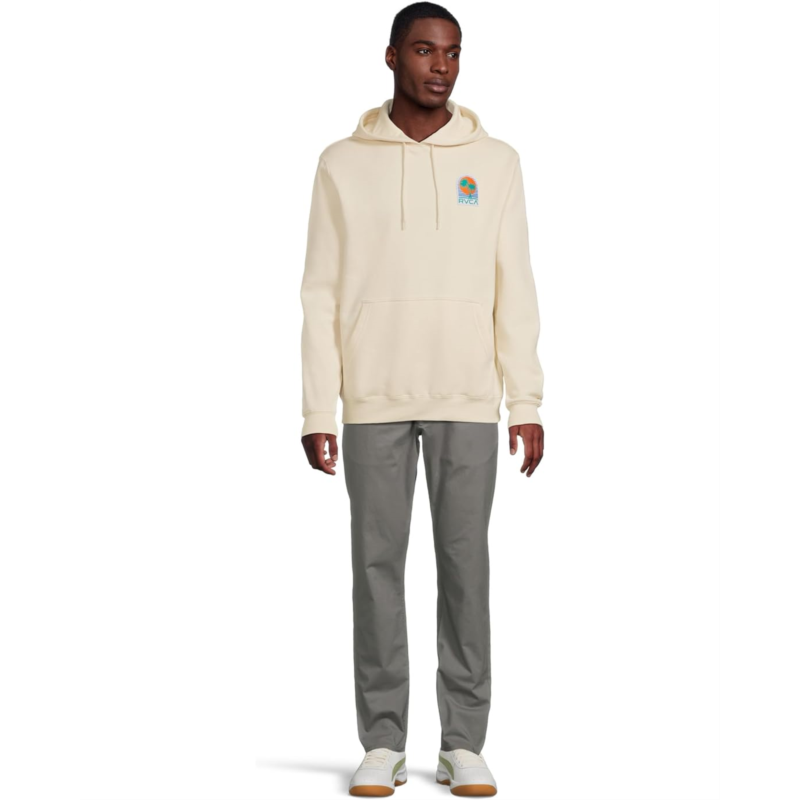 The RVCA Puerto Nuevo Hoodie delivers laid-back comfort with a coastal edge. Made from a 300gsm cotton-poly blend, it offers a regular fit and ultra-soft feel that''s perfect for layering or lounging. A merrowed edge patch on the left chest and screen print on the back add signature RVCA style, while the kangaroo pocket, ribbed cuffs, and ribbed hem round out the classic hoodie silhouette.