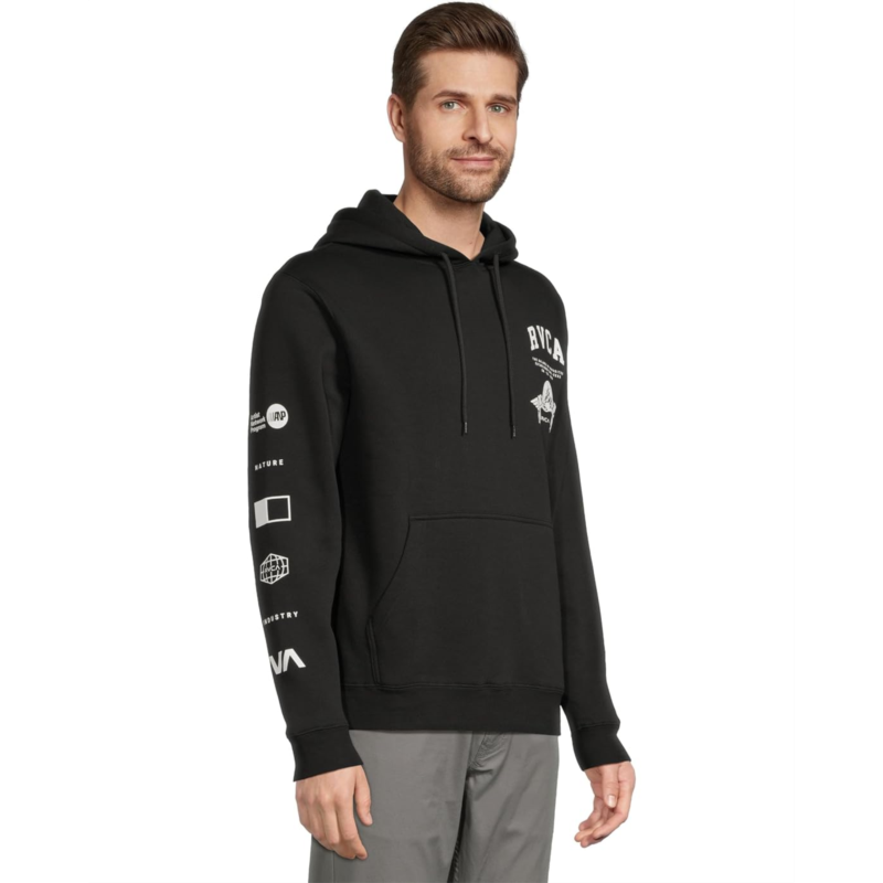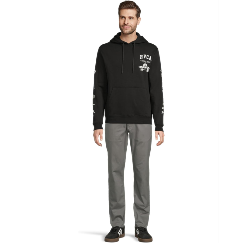 The RVCA Global Rank Hoodie blends cozy comfort with bold, athletic style. Made from a 300gsm cotton-blend fleece, it features a brushed interior for extra softness and warmth. The regular fit, kangaroo pocket, and ribbed cuffs and hem offer classic hoodie functionality, while RVCA screen prints across the front, back, and sleeves deliver standout branding from every angle.
