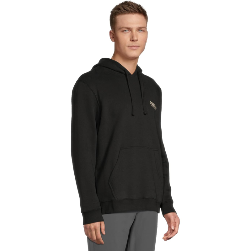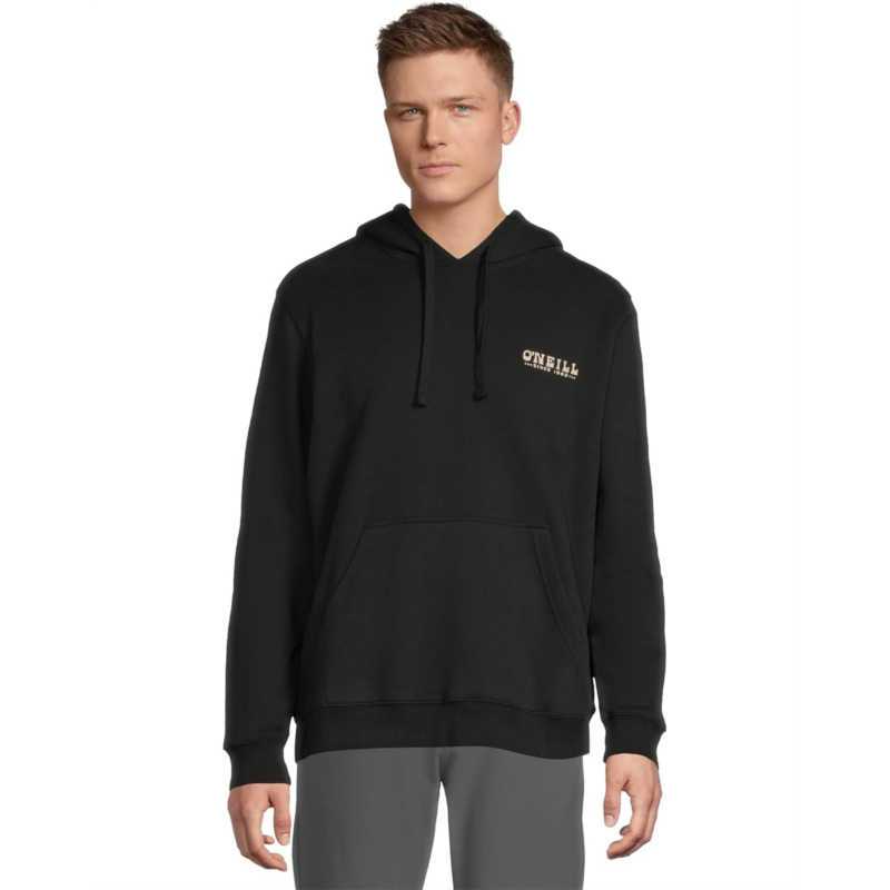 Relax in the comfort and soft hand feel of the O''Neill Fifty Two Cliffs Pullover Sweatshirt, crafted from a cotton polyester butter fleece fabric. The sweatshirt features a hooded neck with a drawstring closure, long sleeves with ribbed cuffs, a kangaroo pocket on the front, and a straight ribbed hem. The cool left chest embroidery and back screenprint adds a stylish touch to the look.