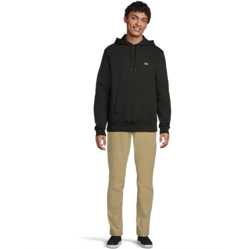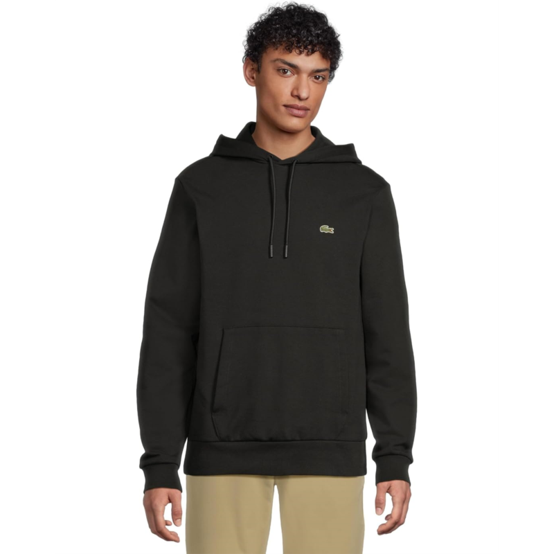 Lacoste Fleece Hoodie: The essential men''s hoodie from Lacoste, made from soft cotton fleece with a comfortable cut and minimalist design, for casual chic. It features a jersey-lined hood, long sleeves, and a front kangaroo pocket. The regular fit and pullover style make it easy to throw on for a casual day out. With a straight hem for a clean finish, this hoodie is a must-have addition to your wardrobe.