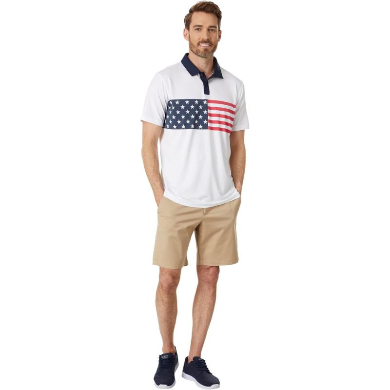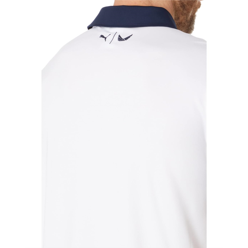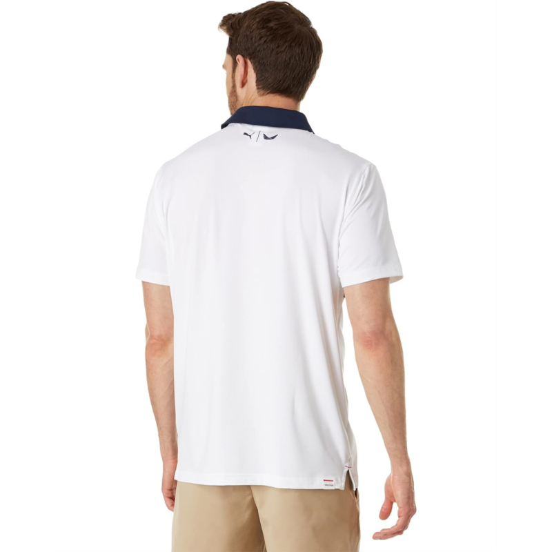 Keep shining your charm by donning the flag print comfy style PUMA Golf Volition Stars & Bars Polo shirt.