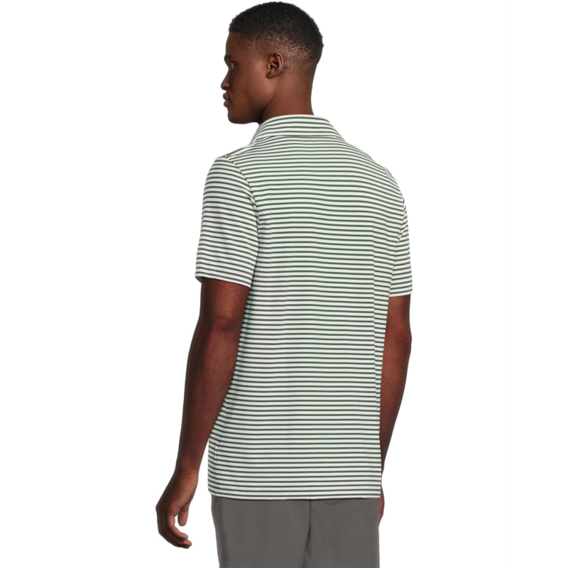 A lesson in technical expertise, designed for golf, tried and experimented by Lacoste players. The Lacoste Ultra Dry Anti-uv Striped Golf Polo Shirt features UPF 50 UV protection and stretch fabric, for comfort and ease of movement. The classic Lacoste stripes and signature details are regular features on the pro golf circuits. Made from recycled technical polyester jersey from manufacturing offcuts. It has a collared neckline with a button placket, short sleeves, and a straight hem.