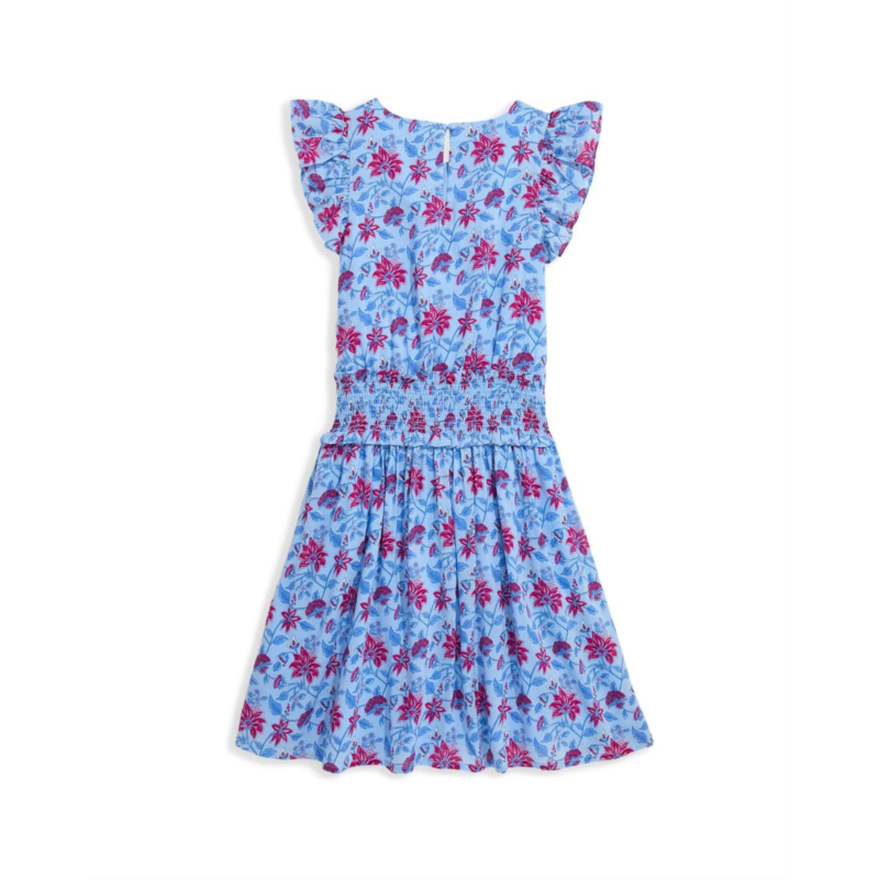 - Sweet, smocked and stylish for winter?this flutter-sleeve dress in the bestselling silhouette is perfect for school days, parties and matching moments with Mom. Crafted from a cozy cotton blend, this dress has allover print, a crew neckline and a back button closure.