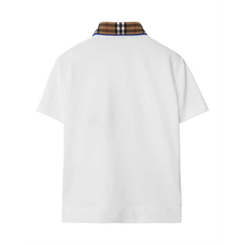 - Add more fun to your kids carefree days with this comfy classic fit Burberry Kids Johane Check EKD Polo Shirt. This polo shirt features a checkered collar with quarter-length concealed buttoned placket and short sleeves. It boasts an embroidered brand logo near the left hem.