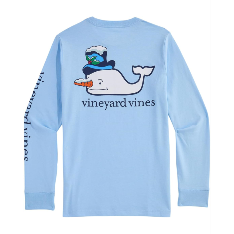 - Flex a casual and comfortable style wherever you go wearing the Vineyard Vines Kids Classic Snowman Whale Long Sleeve Tee. The pull-on style tee features a crew neck, long sleeves with self cuffs, a patch pocket at the left chest, and a straight hem. The branded detailing and cool graphic print at the left chest, left sleeves, & back add an exquisite touch.