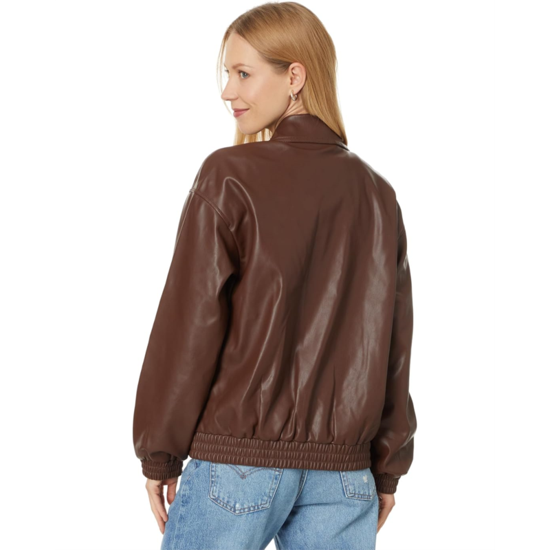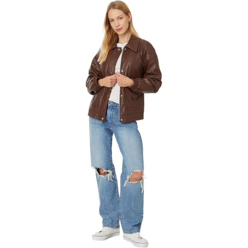Give your style statement a chic update and layer effortlessly with the Levi''s Faux Leather Bomber Jacket. The bomber jacket features a laydown collar, front zipper & snap closure with placket, two lower oversized pockets with snap closure, long sleeves, and cinched hem & cuffs.