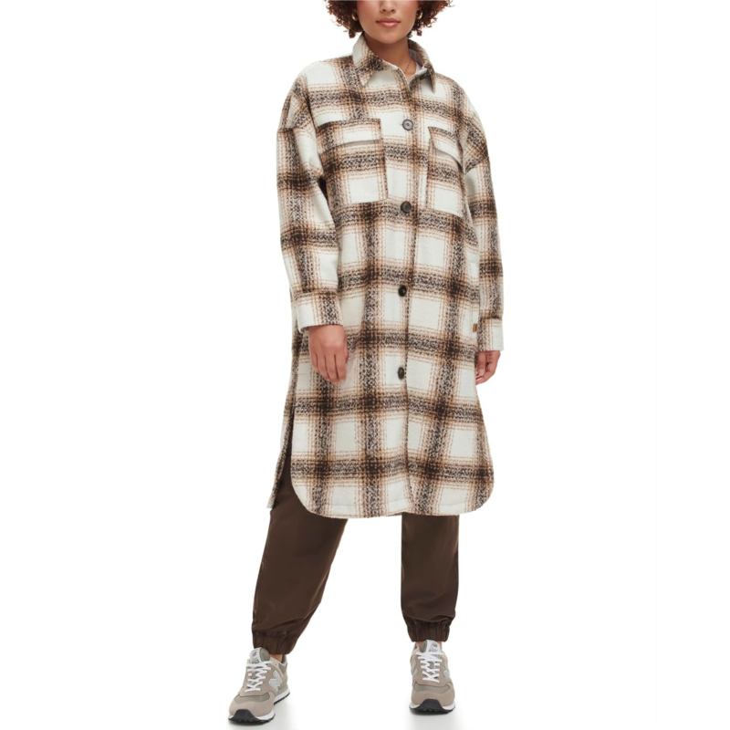 Give a stylish and cozy update to your closet donning the Levi''s Long Length Wool Blend Shirt Jacket. This classic jacket comes with the folded collar, long sleeves with buttoned cuffs, two flap pockets on the chest, buttoned front closure, and rounded hem. This silhouette is intended to hit on the knee to protect you from the harsh weather.