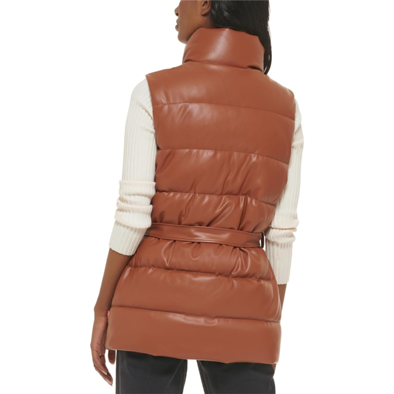 Keep yourself perfectly cozy and comfy as you explore outdoors wearing the Levi''s Vegan Leather Puffer Vest. The jacekt is crafted with finest materials and has got great features. It has a standing collar, hidden zipper closure, removable belt at the waust, and a sleevesless construction.