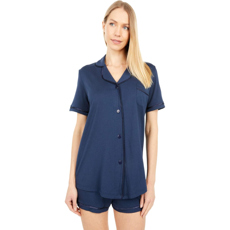Cosabella Bella Short Sleeve Top Boxer Set includes a full front button short sleeve top and high waisted bottoms boasting a trimmed detail. All night comfort ensured!