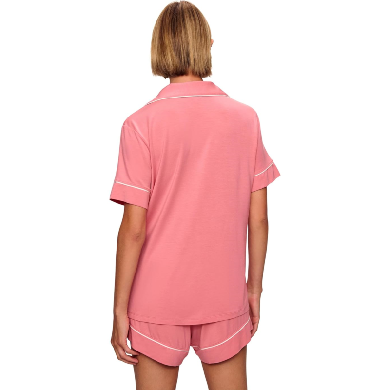 IMPECCABLE SHORTS: This relaxed pajama set comes with a boyfriend fit pajama shorts with longer rise and contrast piping above the hemline for a comfortable fit.
