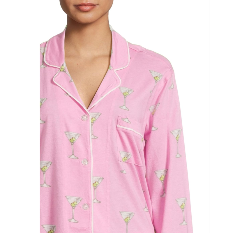 Sip, sleep, and slay in style wearing P.J. Salvage Playful Prints Pajama Set. Crafted from ultra-soft blend jersey, this classic set includes a button-front top with crisp contrast piping and a flattering notch collar neck with short sleeves-perfect for lounging like a pro. The coordinating pants with an adjustable tie, offering an effortlessly cute pull-on fit.