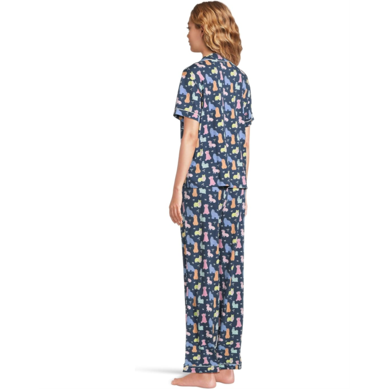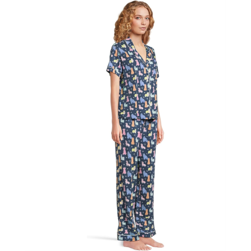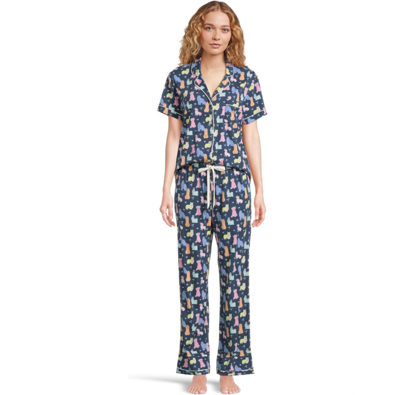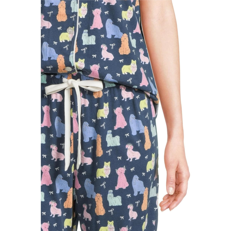 From bedtime to lounge time, stay always comfy wearing the P.J. Salvage Whimsy Pajama Set. Women''s breathable cotton-modal jersey short sleeve pajama set in coral-orange yellow floral print. With aqua contrast piping & tie. Button-front top & open leg pant.