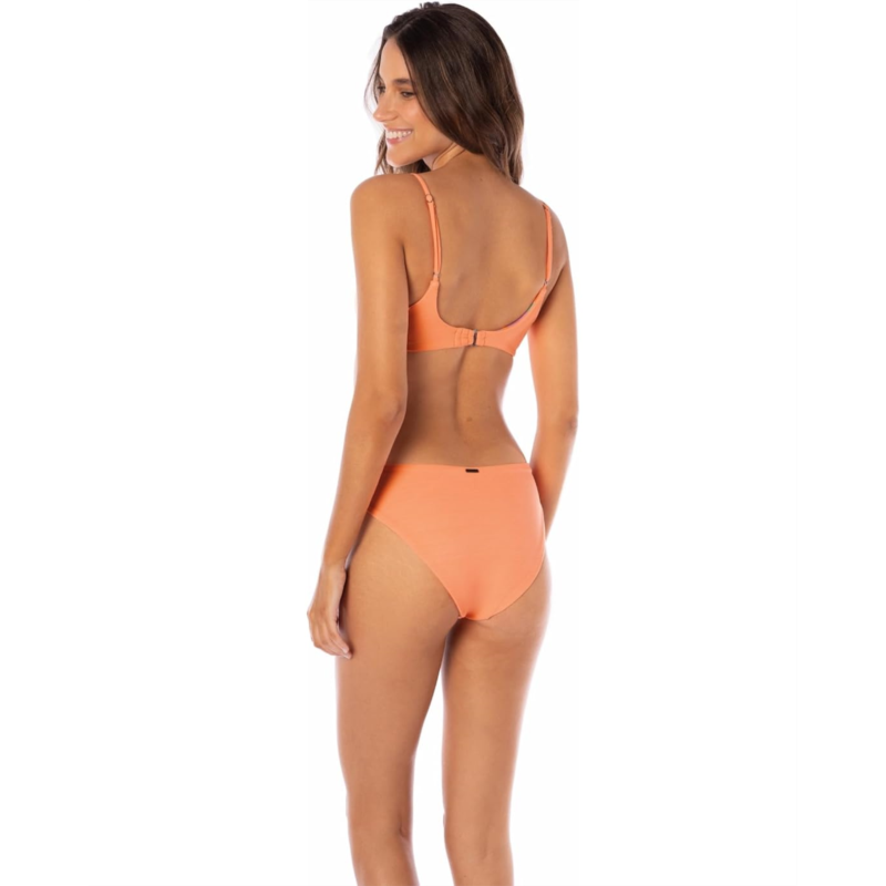 The Maaji Vibrant Apricot Liberties swimwear top is designed for a perfect day of tanning on the beach. It has reversible design, low support, and adjustable thin straps. This swimwear top features moderate coverage without soft cups, and a hook-and-eye closure at the back.