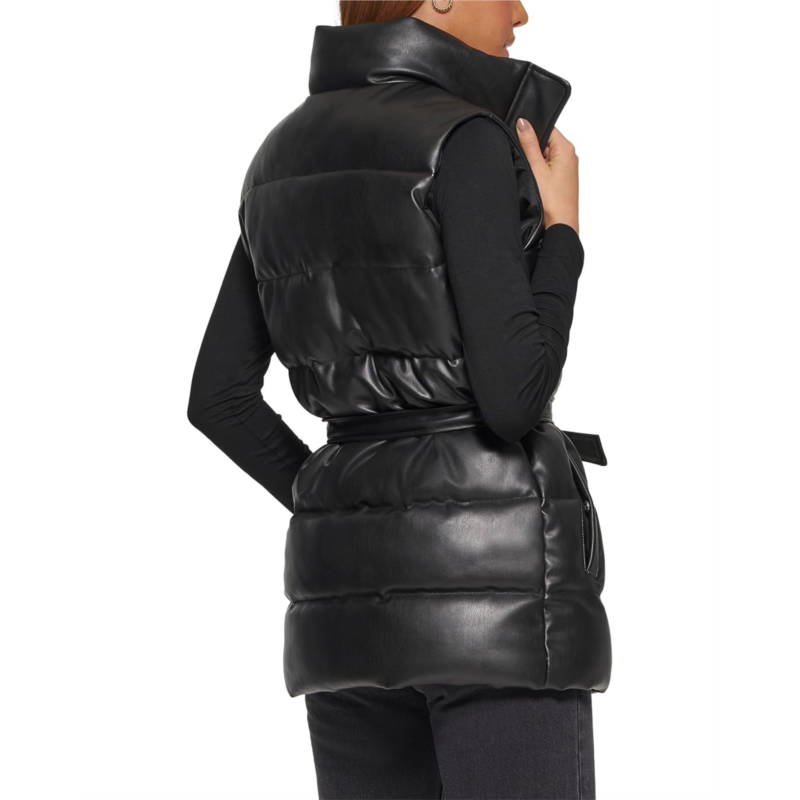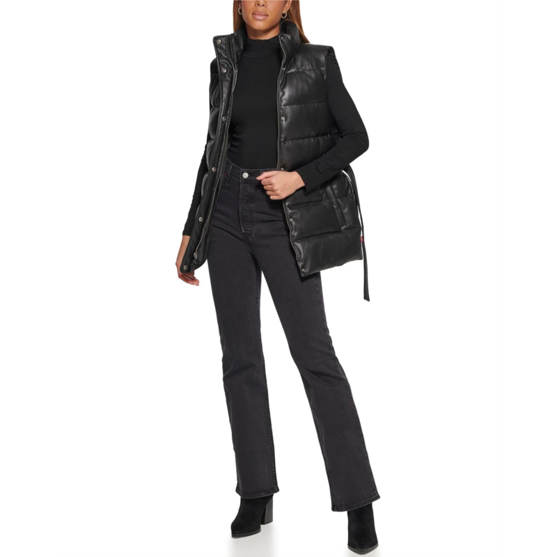 Keep yourself perfectly cozy and comfy as you explore outdoors wearing the Levi''s Vegan Leather Puffer Vest. The jacekt is crafted with finest materials and has got great features. It has a standing collar, hidden zipper closure, removable belt at the waust, and a sleevesless construction.
