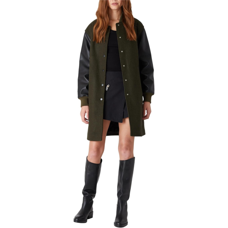 Give your chic style an added edge on chilly weather days in the [BLANKNYC] Role Play Coat. Featuring a ribbed collar with front snap-button closure, long sleeves with ribbed cuffs, front slant hand pockets, and a straight hemline.