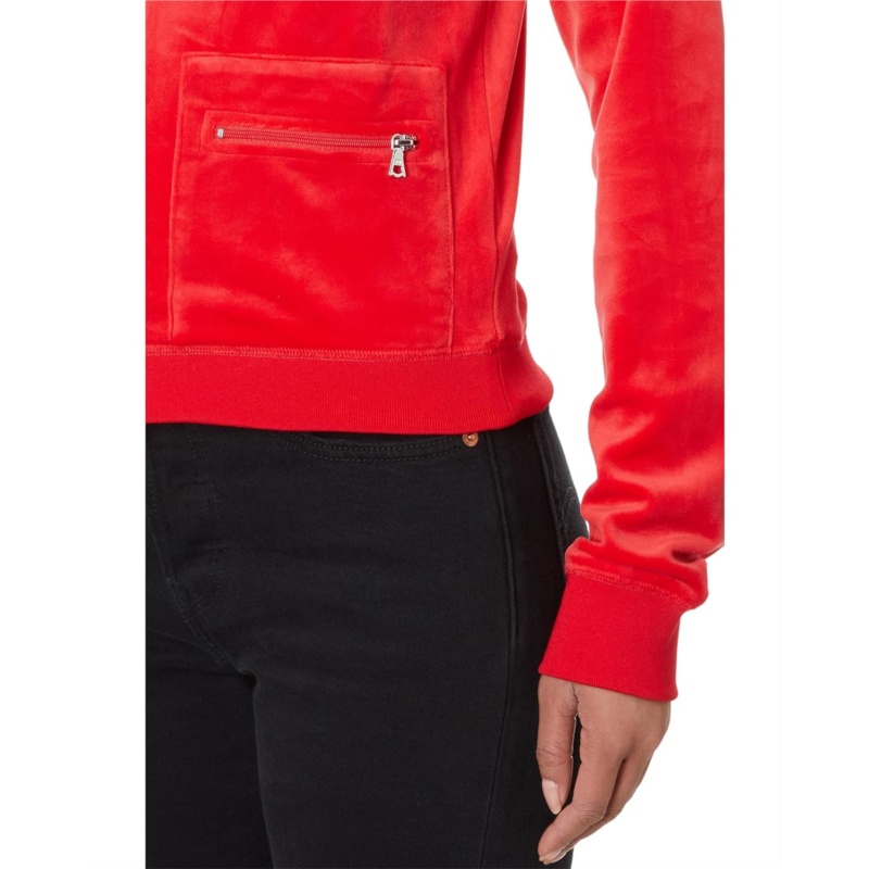 Dress up in the gorgeous Juicy Couture Heritage Mock Neck Track Jacket with Back Graphic for a glamorous appeal. The style features a shiny fabric with zippered closure and branded graphics on the back.